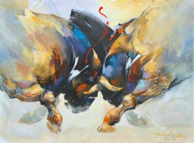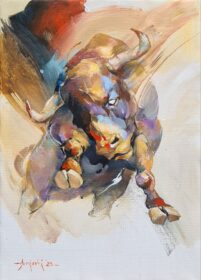 Braca Đurković, ,,Borbeni bik”, ulje na platnu, dimenzije 50x40cm, uramljeno – 57x47cm