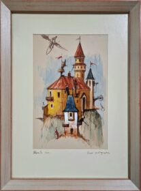 GORAN MITROVIĆ Goran Mitrović ,,Čuvari starog zamka” kombinovana tehnikadimenzije 50x35cm, uramljeno 77x52cm