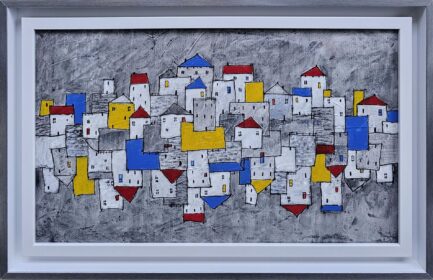 Jelena Mirković Janković ,,Bauhaus”, Kombinovana tehnika, dimenzije 30cm×50cm, uramljena 37,5×57,5cm