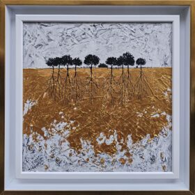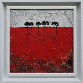 Jelena Mirković Janković Ciklus ,,Koreni”, Kombinovana tehnika, dimenzije 30cm×30cm, uramljena 37,5cm ×37,5cm