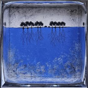 Jelena Mirković Janković Ciklus ,,Koreni”, Kombinovana tehnika, dimenzije 30cm×30cm, uramljena 33,3cm×33,3cm