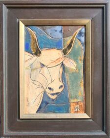 Marija Stanojlović, ,,Taurus 1″ Kombinovane tehnike, keramika, zlato dimenzije 30cm×20cm, uramljena 36cm×26cm
