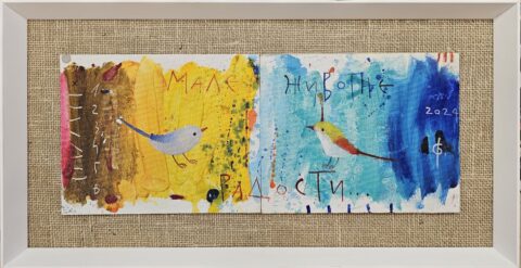 Bojan Savić, ,,Male životne radosti”, Kombinovane tehnike, na lesonitu, Dimenzije 20cm×50cm, uramljena…