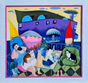Mrs&Mr Everest, ,,Udobno se smesti”ulje na platnu, dimenzije 70×93, sa ramom 81x94cm.