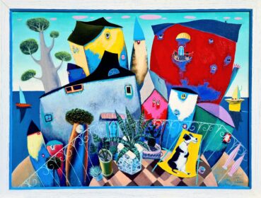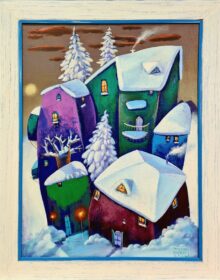 Mrs&Mr Everest, ,,Porodica narandžastih krovova”ulje na platnu, dimenzije 39x24cm, sa ramom 49x34cm.