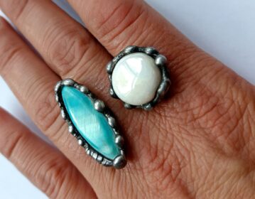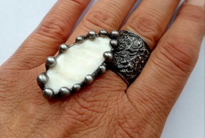 Pozvati za narudžbinu Prsten, ručni rad, podesiva veličina, bakar, kalaj, patina, sedef…