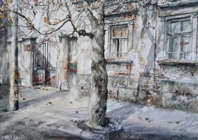 Silva Vujović, akvarel,,Lepotica iz Skender Begove ulice”Dimenzije – 38×52cm
