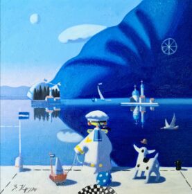 Zoran Krulj, ,,Jedrilica” Ulje na platnu, dimenzije 30x30cm