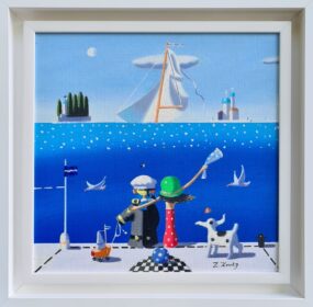 Zoran Krulj, ,,Jedrilica” Ulje na platnu, dimenzije 30x30cm, uramljeno 37x37cm