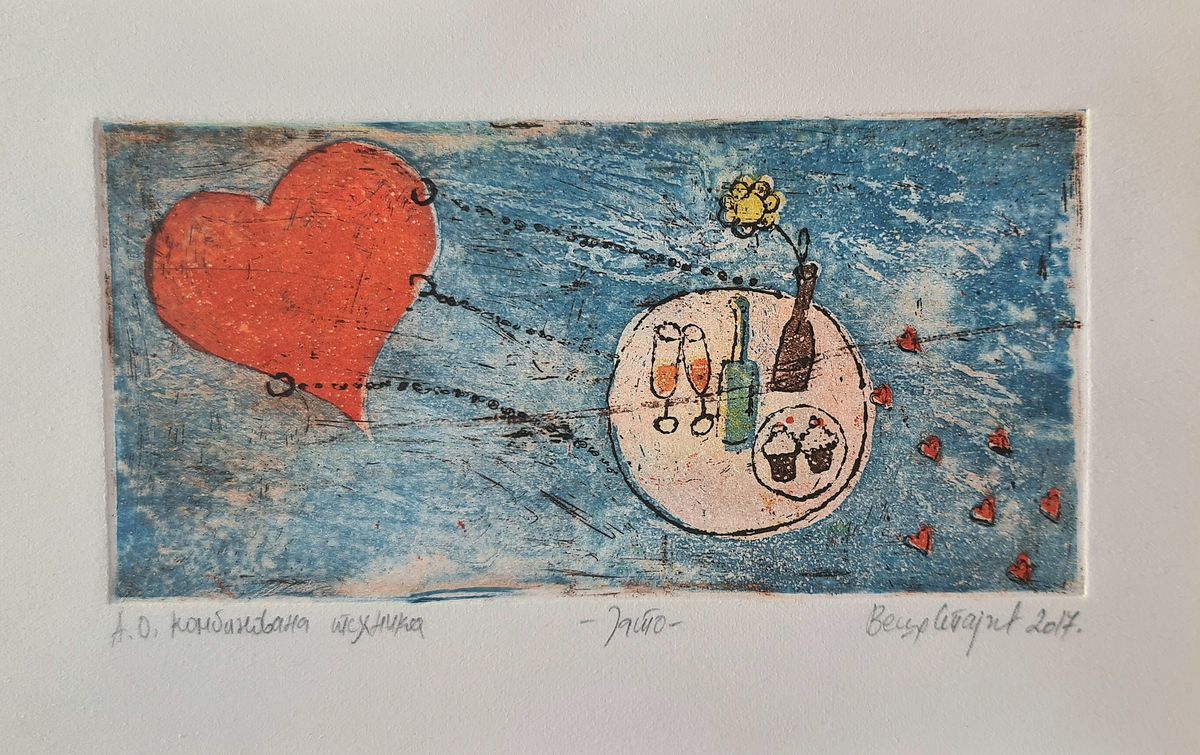 Grafika – Vesna Stajčić Vesna Stajčić ,,Jato” Grafika, autorski otisak 2017. god. Dimenzije ploča 8,5cm×17,5cm grafika, Nedostupno, Vesna Stajčić Post navigation Previous post Grafika – Vesna StajčićNext post Grafika – Vesna Stajčić